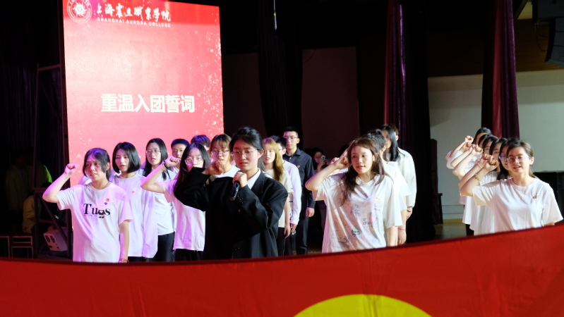 學生會執(zhí)行主席胡菁菁同學帶領團員代表們重溫入團誓詞。一字一句,鏗鏘有力,作為黨的后備軍,將始終以團員的身份要求自己,高舉團旗跟黨走。