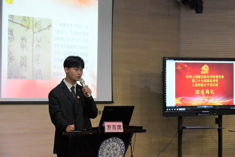 和以往結(jié)業(yè)典禮不同,本次活動(dòng)要求學(xué)員們以學(xué)院為單位,自己定內(nèi)容、定形式進(jìn)行總結(jié)與匯報(bào)。在臺(tái)上,學(xué)員們有的不僅播放了PPT,更制作了小視頻;有的為自己“加課”:采訪了身邊的優(yōu)秀共產(chǎn)黨員并在臺(tái)上和大家分享感悟;有的集體上臺(tái)一一闡述高黨學(xué)習(xí)給自己帶來的思想變化;有的利用自己的專業(yè)特長(zhǎng),為大家呈現(xiàn)了一個(gè)“小品”,生動(dòng)地講述了自己的入黨動(dòng)機(jī)……通過這樣的匯報(bào),學(xué)員們更好地展示了自己的特色和學(xué)院的亮點(diǎn),讓各總支書記和黨委領(lǐng)導(dǎo)們看到了入黨積極分子們的進(jìn)步。