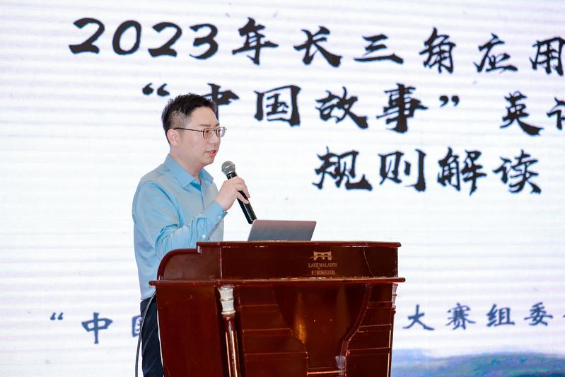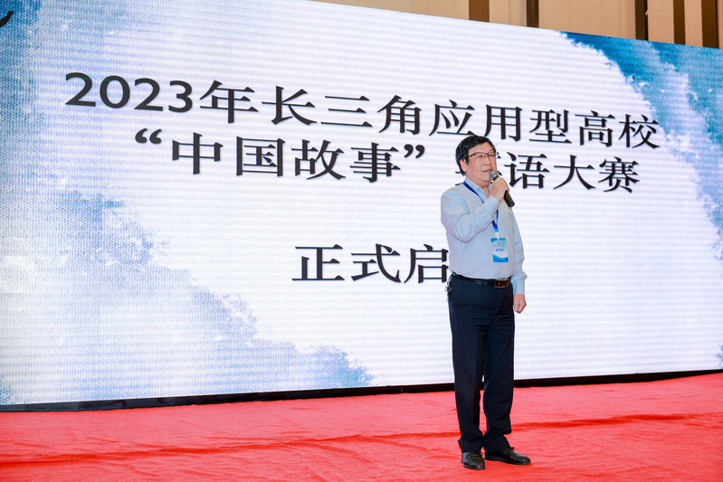 上海震旦職業(yè)學(xué)院教師工作部部長胡克文教授代表組委會(huì)宣布 2023 年長三角應(yīng)用型高?!爸袊适隆庇⒄Z視頻大賽正式啟動(dòng)。