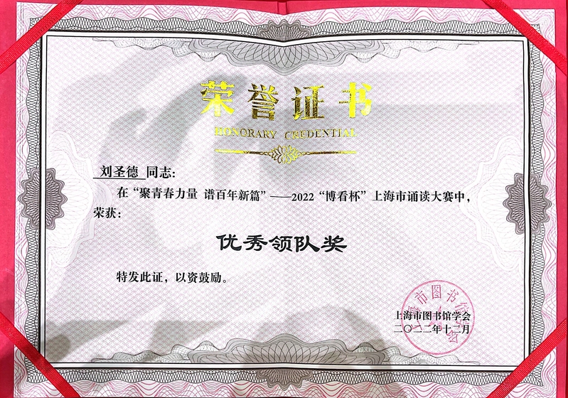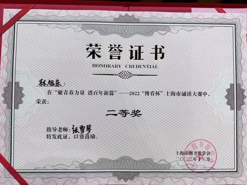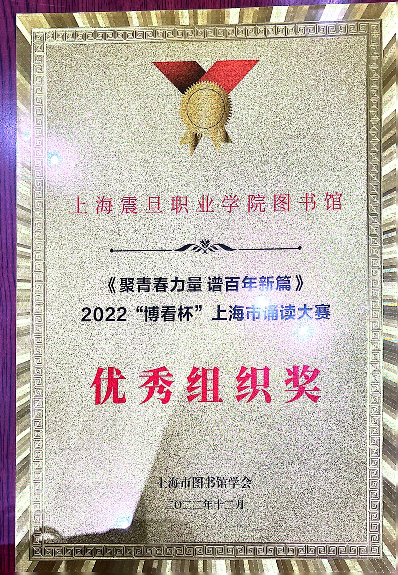 5月16日,《聚青春力量 譜百年新篇》2022“博看杯”上海市誦讀大賽決賽在上海圖書館東館樂享廳落下帷幕,我校參賽作品《豐碑》在決賽中榮獲二等獎(jiǎng),上海震旦職業(yè)學(xué)院獲“優(yōu)秀組織獎(jiǎng)”,我校圖書館劉圣德老師獲“優(yōu)秀領(lǐng)隊(duì)獎(jiǎng)”,校團(tuán)委張雪琴老師獲“優(yōu)秀指導(dǎo)老師獎(jiǎng)”。