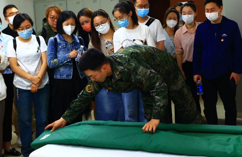 武警官兵熱情地接待了我校教師,并帶領(lǐng)大家參觀了他們的隊(duì)史館、榮譽(yù)室、學(xué)習(xí)室、官兵宿舍,還現(xiàn)場(chǎng)觀看了戰(zhàn)士整理內(nèi)務(wù)的展示。