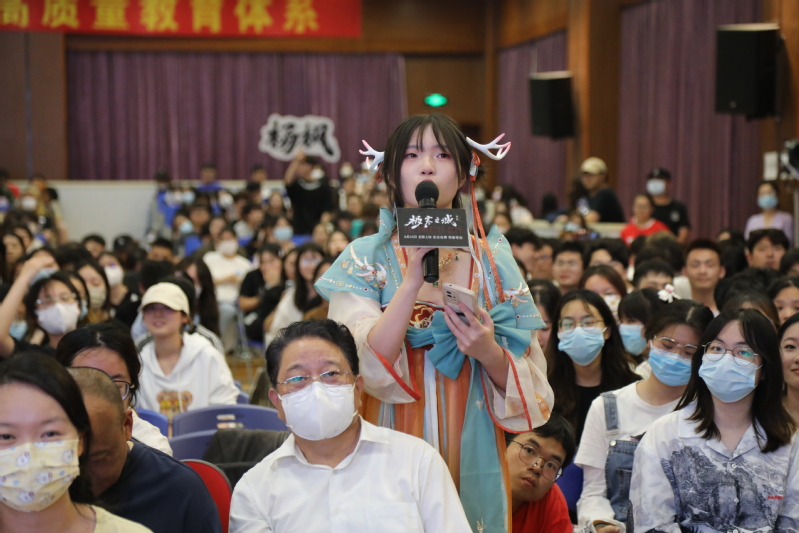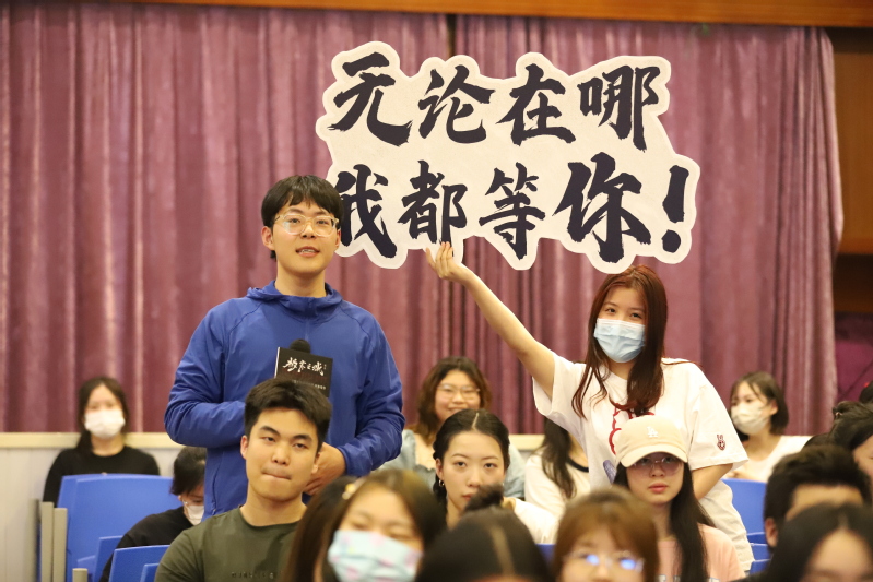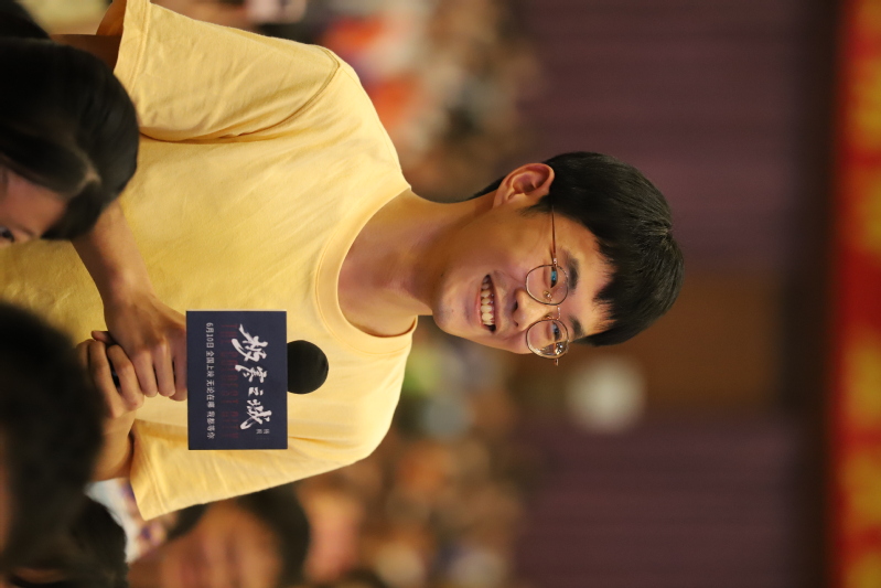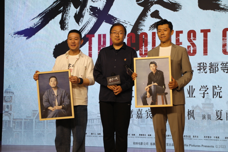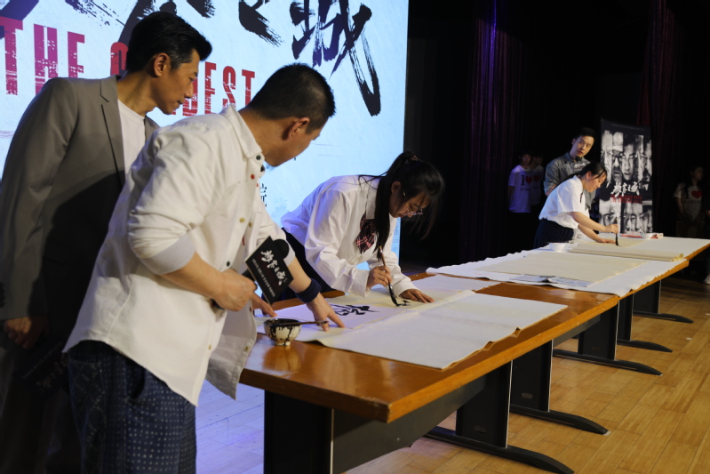 聽說夏雨老師在書法藝術(shù)上頗有造詣,五年一貫制的兩位同學(xué)上臺(tái)向夏雨老師求教,并手書了“極寒之城”四個(gè)字作為禮物送給夏雨老師和楊楓導(dǎo)演。
