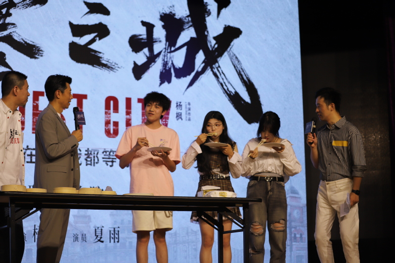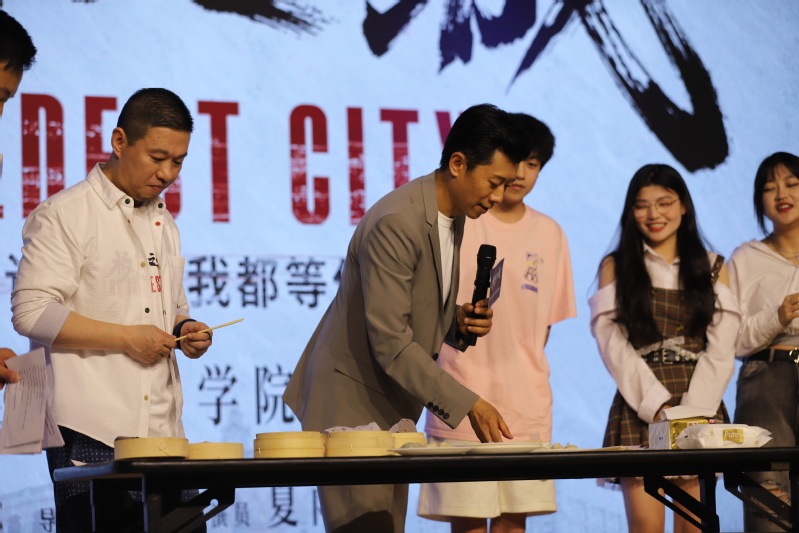 《極寒之城》主創(chuàng)團(tuán)隊(duì)與震旦師生的互動(dòng)環(huán)節(jié),將路演活動(dòng)推向了高潮。導(dǎo)演楊楓和演員夏雨老師介紹了影片拍攝、劇情結(jié)構(gòu)以及拍攝過程中的花絮趣事。東方電影學(xué)院的學(xué)生把這次路演活動(dòng)看做一次珍貴的學(xué)習(xí)機(jī)會(huì),現(xiàn)場同學(xué)積極向主創(chuàng)提問,主創(chuàng)們一一做了精彩的回答。主創(chuàng)人員還邀請三位同學(xué)上臺(tái)品嘗了上海名吃小籠包,現(xiàn)場歡樂不斷,氣氛熱烈。
