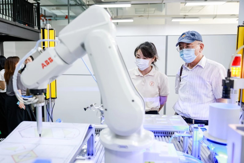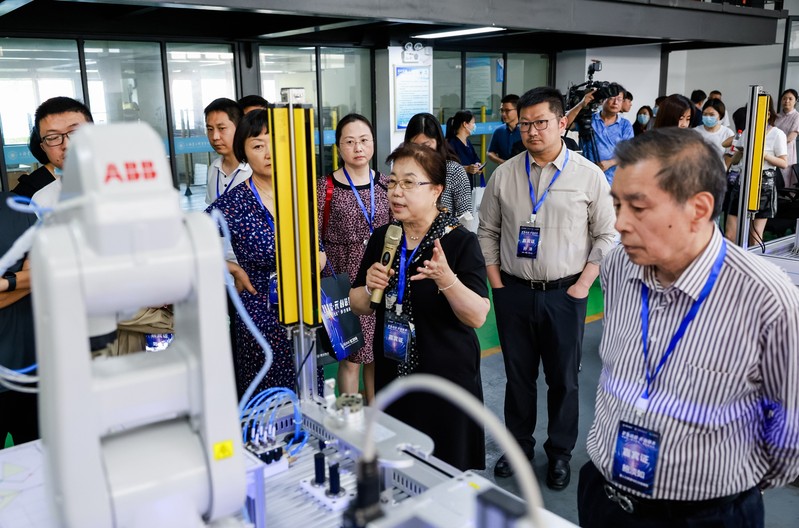 此次大會設(shè)置兩個分會場,第一分會場為智能工程產(chǎn)業(yè)學院教學改革成果展示會,向各位嘉賓介紹了智能產(chǎn)業(yè)學院基地機器人,舉行了中華人民共和國教育部“互聯(lián)網(wǎng)+中國制造2025促進計劃項目”ABB實驗實訓與創(chuàng)新基地落成揭牌儀式,智能工程與元宇宙新技術(shù)校企合作-多方合作進行圓桌交流溝通。