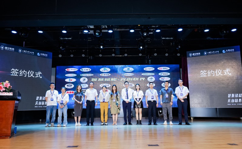 寶山高新產(chǎn)業(yè)園代表、行業(yè)協(xié)會代表、學校代表、企業(yè)代表一同為智慧賦能 元創(chuàng)聯(lián)界——首屆“政行校企”多方聯(lián)盟揭幕。
