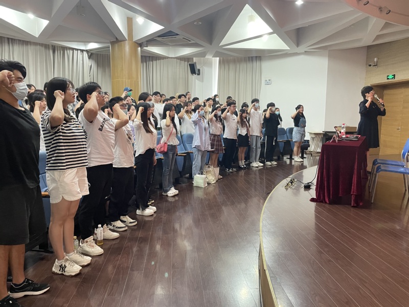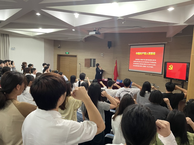 最后,全體畢業(yè)生黨員在夏臻副書記的帶領(lǐng)下,面對黨旗舉起右手,共同重溫入黨誓詞。