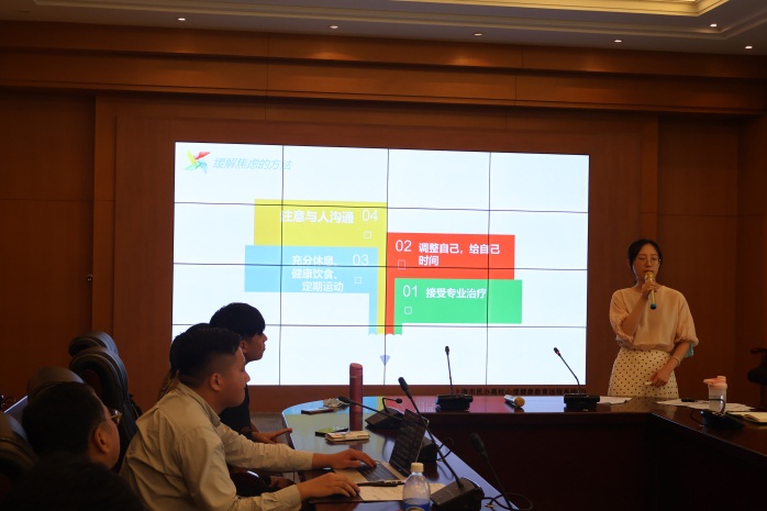 報告會后,我校五位輔導(dǎo)員分享了自己的工作感悟。輔導(dǎo)員建設(shè)月,通過線上投票,智能工程學(xué)院宋浩然老師的《心理問題案例分析及輔導(dǎo)員心理調(diào)整》獲一等獎,公共衛(wèi)生與護理學(xué)院耿梅老師的《敞開心扉 學(xué)會溝通》、經(jīng)濟管理學(xué)院曠惠瑩老師的《打破心理障礙,留級生快速融入新班級》獲二等獎;東方電影學(xué)院支焓宇老師的《我該怎么辦?關(guān)注焦慮情緒 快樂成長》、教育學(xué)院戴昊奇老師的《“告別”討好型人格》獲三等獎。