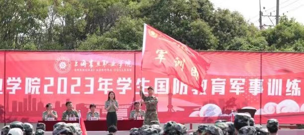 鐘劼菁處長為本次軍訓(xùn)授軍訓(xùn)團(tuán)團(tuán)旗。一旗授,一營成。少年不懼歲月長,青春意氣凌九霄,未曾拼盡全力,何談肆意揮灑青春。