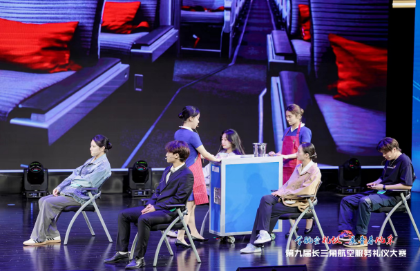 第三個(gè)環(huán)節(jié)是“展禮示儀”。震旦學(xué)子自行編排航空禮儀情景劇,展示在飛行中應(yīng)對問題的能力。他們生動(dòng)演繹出航空服務(wù)人員如何在確保飛行安全的同時(shí)提高乘客的滿意度,贏得了評委和觀眾的陣陣掌聲。