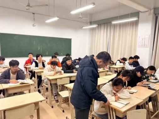 在晚自習(xí)教室,鄧凱院長詳細(xì)查看了2023級新生班級晚自習(xí)出勤率和學(xué)習(xí)情況。當(dāng)看到新生們都在認(rèn)真溫習(xí)功課時,鄧院長點(diǎn)頭贊許。他對同學(xué)們說,進(jìn)入大學(xué)后,課業(yè)緊張,任務(wù)繁重,好好利用晚自習(xí)的時間來埋頭學(xué)習(xí),才能更好、更快的掌握專業(yè)知識。大學(xué)生活并不像我們想象中那么輕松自在,相較高中階段有老師督促的被動式學(xué)習(xí),大學(xué)更需要自律性和自主性的學(xué)習(xí),希望同學(xué)們繼續(xù)保持優(yōu)良的學(xué)風(fēng),認(rèn)真學(xué)習(xí),不辜負(fù)大學(xué)時光。