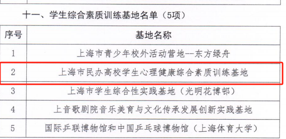 日前,中共上海市教育衛(wèi)生工作委員會和上海市教育委員會聯(lián)合發(fā)文公布2024年度上海高?!皶r代新人鑄魂工程”培育項目入選名單,我校承建的心理健康教育基地位列其中。據(jù)悉,2024年度上海高校遴選100個“時代新人鑄魂工程”培育項目,其中入選學(xué)生綜合素質(zhì)訓(xùn)練基地的僅有5項。
