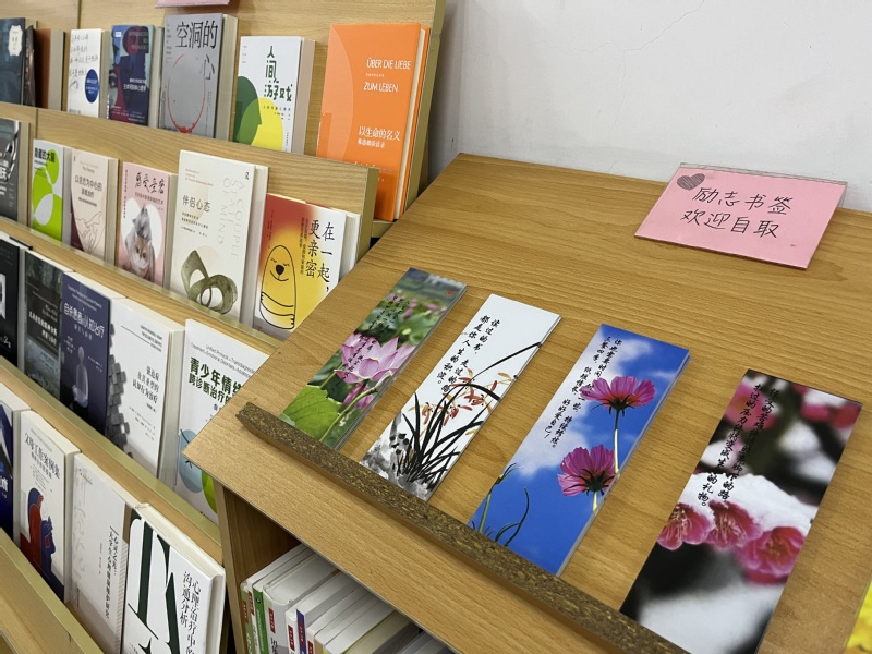 此次推薦圖書涉及心理普及類讀物、針對特定問題的專業(yè)書籍,另有心理健康中心制作的勵志書簽供讀者免費(fèi)取用。期待能夠以書香為師生帶來心靈的慰籍。