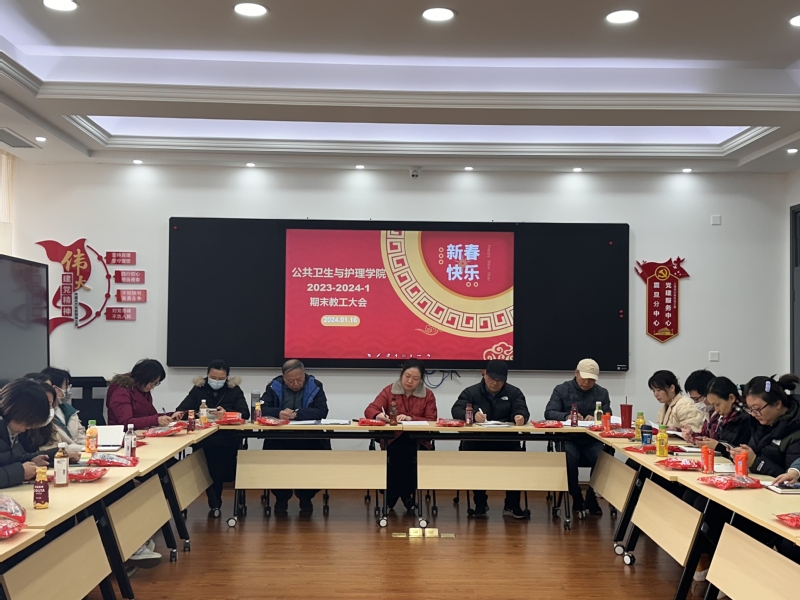2024年1月16日上午,公共衛(wèi)生與護(hù)理學(xué)院召開期末教職工大會,總結(jié)2023年度學(xué)院的教學(xué)、科研等重點(diǎn)工作,謀劃2024年度學(xué)院的發(fā)展規(guī)劃,并布置2024年度工作重難點(diǎn)以及其他相關(guān)事項(xiàng)。學(xué)院院長胡守忠、副院長胡鵬飛、任課老師和輔導(dǎo)員等參加了會議。會議由學(xué)院黨總支書記王璐主持。